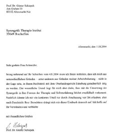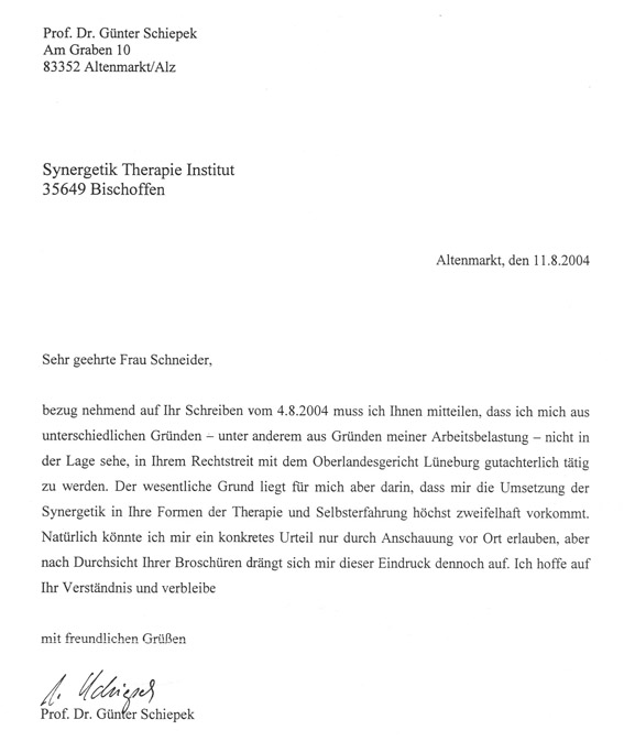 Briefwechsel zur Gutachteranfrage von Profis, die Synergetik