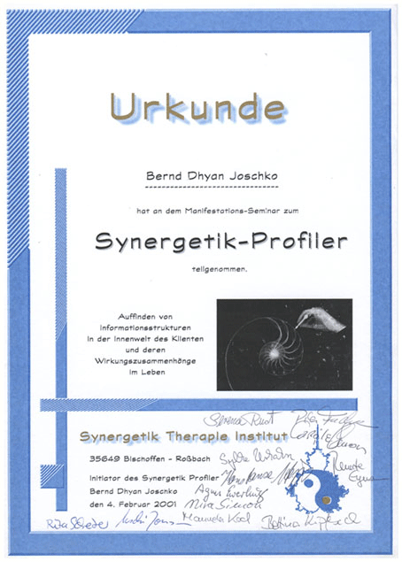 eine Abschlussprüfung als Synergetik Profiler wirklich massgebend,
